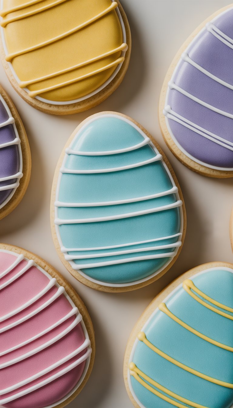 Simple white stripes sweep across vibrant icing, giving these cookies a clean, cheerful Easter look. They’re quick to decorate but still pop on a dessert table.