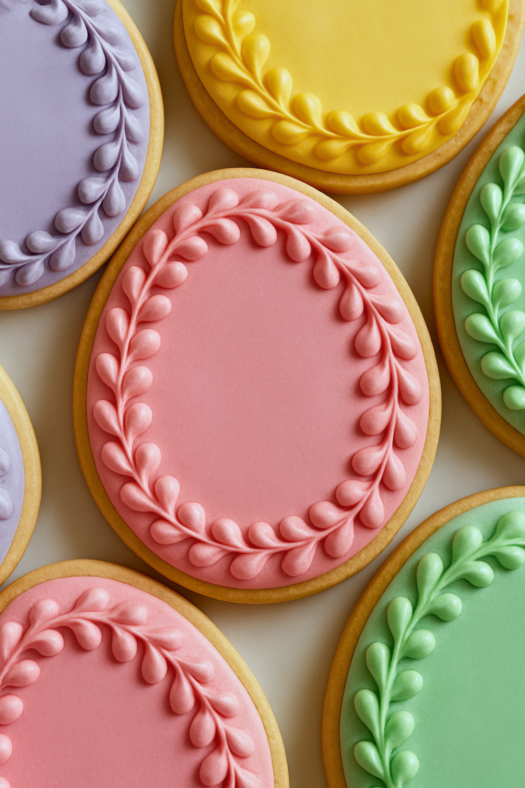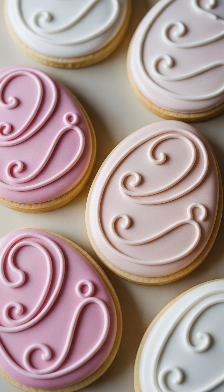 Graceful swirls piped in matching tones give these cookies a timeless, sophisticated flair. The subtle design makes them perfect for classy Easter gatherings or spring tea parties.
